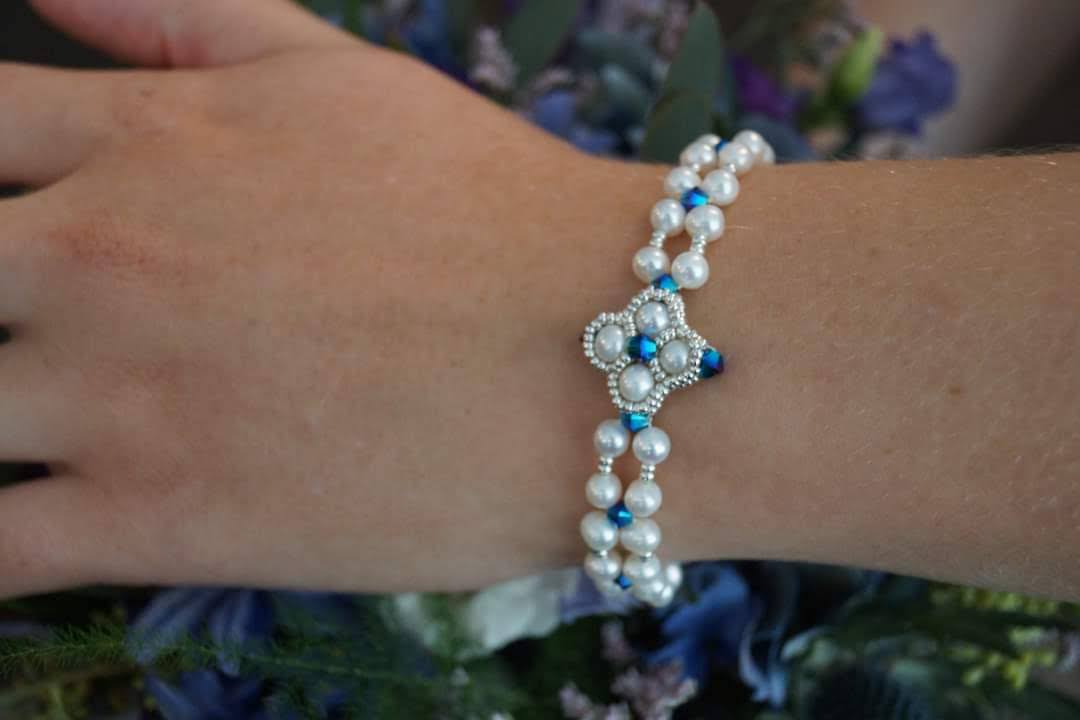 This set is crafted with freshwater pearls in any colour you would like, with either Swarovski krystals or facet cut gemstone pearls in either Sterling Silver or 24k glassbeads. These items are crafted to order, and can be altered to taste.